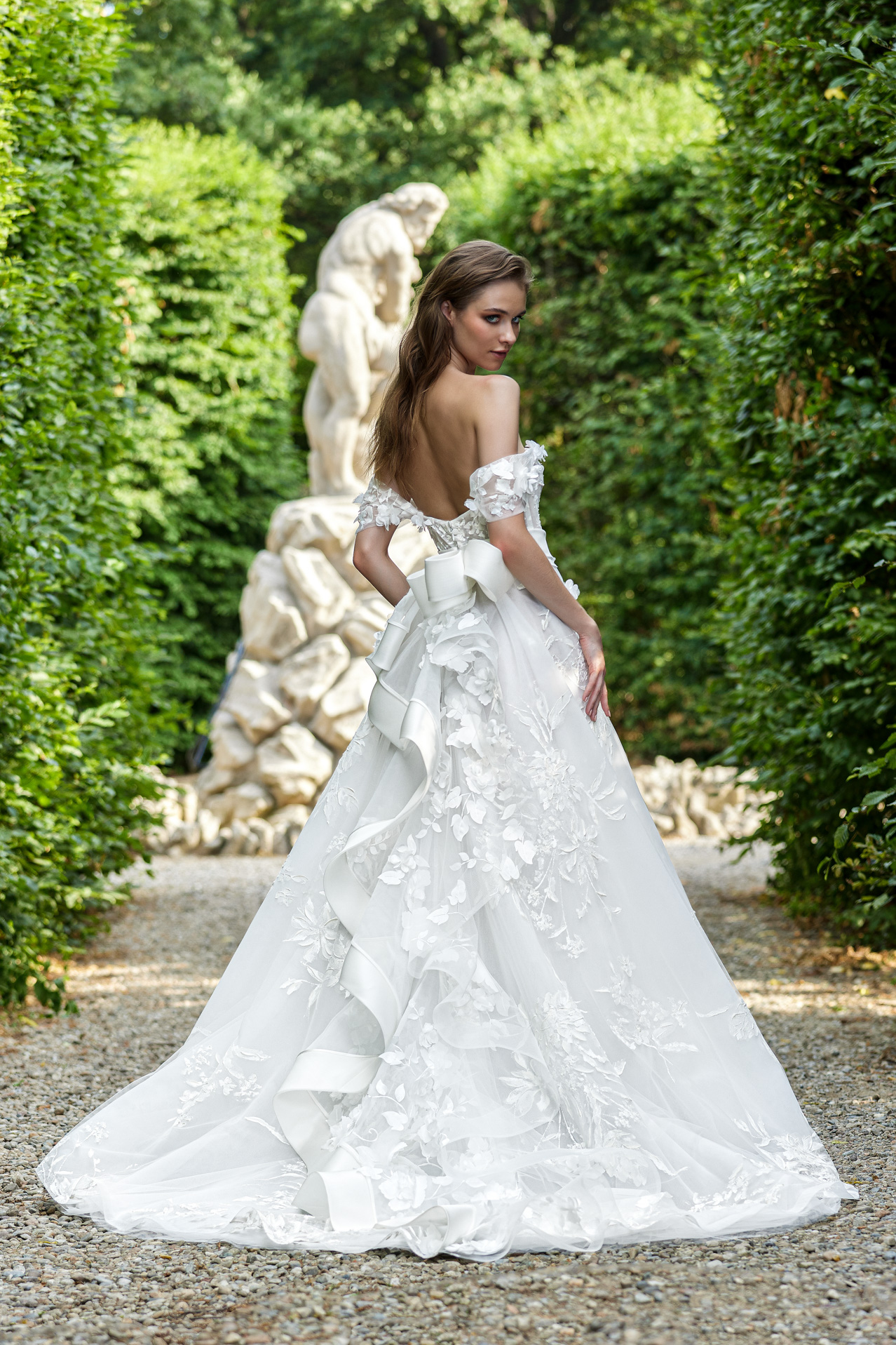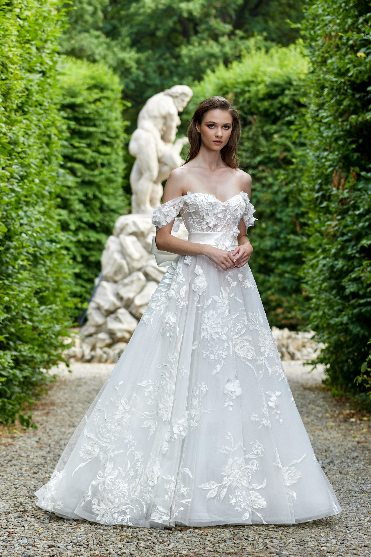 Uno degli abiti da sposa più fashion della meravigliosa collezione sposa firmata Blandaleone! Una sciccheria in stile red carpet realizzata in leggerissima georgette di seta pura! Scollo a v e fascia alta drappeggiata! gonna scivolata con spacco sensuale lato sx con applicazioni di rose in rilievo! Il capolavoro è impreziosito da una mantella sempre in georgette e rose tridimensionali! Che dire d’ altro! Una magia dall’effetto Wow!